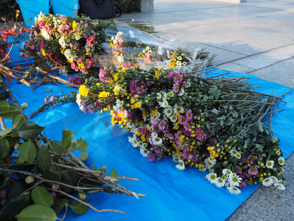 参拝者お一人お一人に献花していただけるよう、花を千本用意しました。