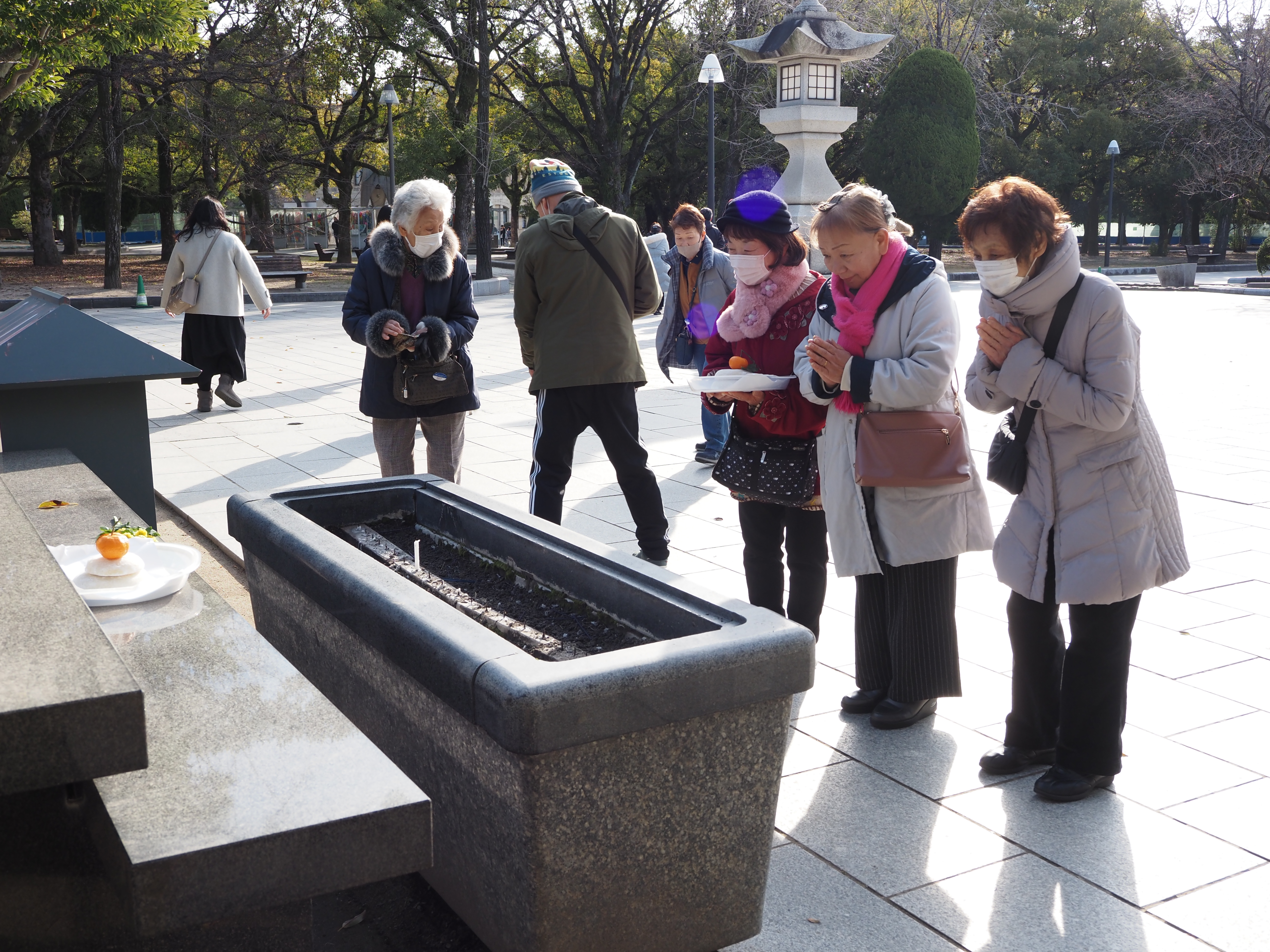 元旦早朝から多くの方が平和公園に訪ねてこられます。