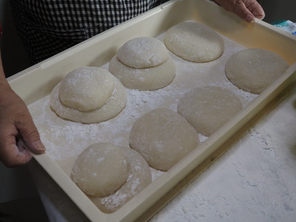 このお餅つきの最大の目的は鏡餅を作ることです。