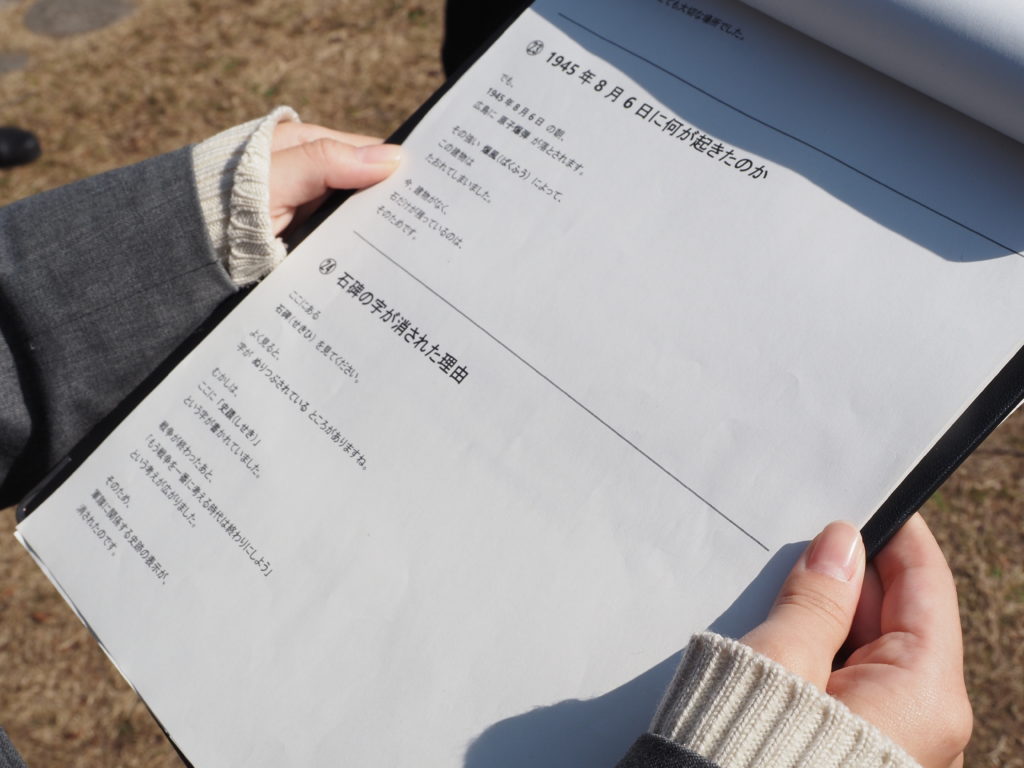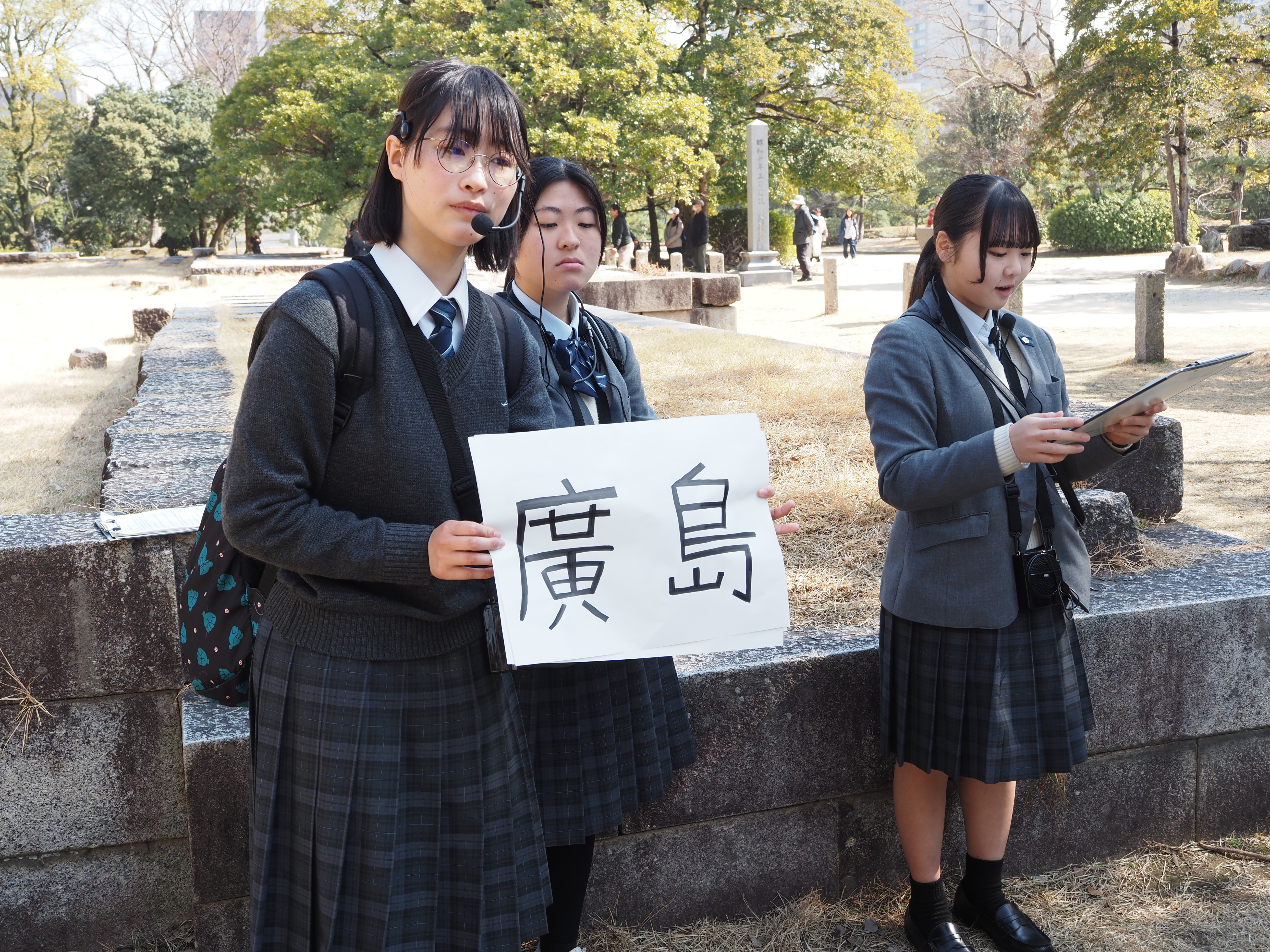 2026年2月21日(土)、春めいた好天の下、広島市立広島商業高校(市商)みらい商業科観光ビジネスコースの生徒さんたちによる平和ガイド研修がありました。